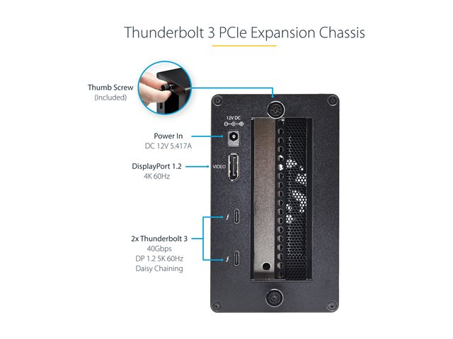 StarTech.com Thunderbolt 3 PCIe Expansion Chassis, External Enclosure Box with 1x PCI-Express Slot, 5K/4K Output Via TB3/DP Ports, TAA