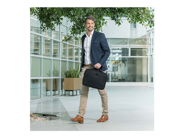 Le sac Eco Traveller BASE pratique protège votre ordinateur portable de taille 13 - 14.1", de manière optimale, grâce au compartiment pour ordinateur portable rembourré avec de la mousse haute densité (HDF, High-Density Foam). Une stabilité et une protection supplémentaires sont garanties par le cadre en fil métallique. Avec sa légèreté parmi les sacoches d'ordinateurs portables, elle garantit une mobilité flexible. Des documents peuvent être facilement rangés dans le compartiment à documents. Dans le compartiment avant pratique, vous trouverez suffisamment de place pour le smartphone ou d'autres accessoires mobiles tels que des câbles, des stylos ou des chargeurs qui doivent toujours être à portée de main. Le sac est confortable à porter, grâce aux poignées rembourrées en néoprène, et peut être attaché instantanément au chariot, grâce à une bande intégrée. En outre, le sac peut également être transporté grâce à la bretelle réglable. Cela fait de l'Eco Traveller BASE le sac parfait pour tous ceux qui se déplacent souvent et qui souhaitent soutenir la réutilisation raisonnable des bouteilles en PET grâce à une solution de transport écologique.