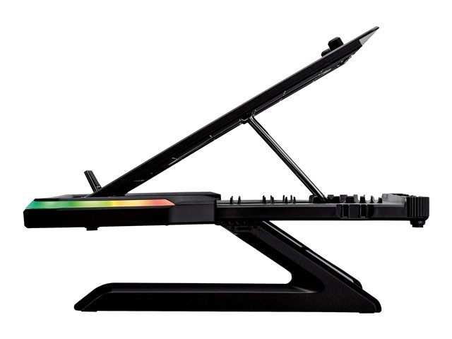 Avec 9 angles de vision réglables, 2 niveaux de hauteur, 2 supports de téléphone, des pieds pliables et un éclairage RGB, le support pour ordinateur portable de jeu Portus X1 positionne tout là où vous en avez besoin pour un jeu optimal.