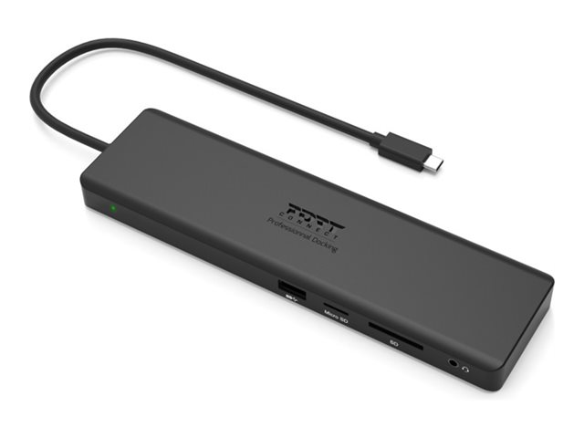 La station d'accueil USB-C 901906-W de PORT Connect permet de connecter jusqu'à 11 périphériques sur un seul port USB-C de votre ordinateur. Elle permet d'afficher jusqu'à 3 écrans additionnels en résolution 1080p full HD ou 1 écran en Ultra HD 4K. Compatible avec les ordinateurs PC & Mac en USB-C, elle permet de recharger son appareil jusqu'à 100W. Son design compact et sa fonction d'auto-alimentation la rendent parfaitement adaptée à la mobilité.
