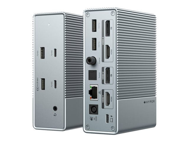 Rencontrez une façon dont les gens maximisent le PC, Chromebook ou MacBook de n'importe quel professionnel, la station d'accueil HyperDrive GEN2 15-en-1 USB-C. Cette station d'accueil USB-C puissante et minimaliste est dotée d'une prise en charge sans pilote du triple affichage étendu pour offrir une solution de connectivité incroyablement polyvalente. En outre, elle dispose de 15 ports intégrés pour tous vos appareils ou périphériques connectés, et vous permet de vous connecter à des écrans étendus avec la flexibilité de 2 ports HDMI ou 2 DisplayPorts qui peuvent être utilisés de manière interchangeable.
