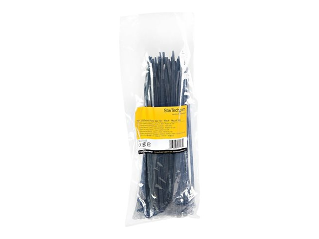StarTech.com 10"(25cm) Cable Ties, 1/8"(4mm) wide, 2-5/8"(68mm) Bundle Diameter, 50lb(22kg) Tensile Strength, Nylon Self Locking Zip Ties w/ Curved Tip, 94V-2/UL Listed, 100 Pack, Black