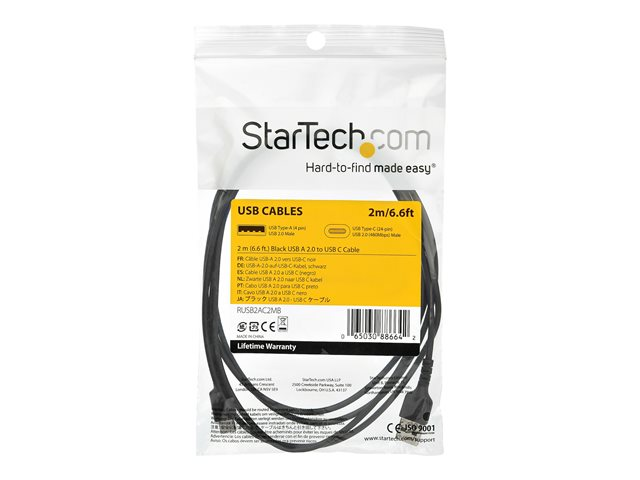 Cordon USB 2.0 vers USB-C à Charge/Synchronisation Rapides - Gaine TPE en Fibre Aramide M/M 3A Noir - Samsung S10/iPad Pro/Pixel (RUSB2AC2MB) - Câble USB - USB (M) droit pour 24 pin USB-C (M) droit - Thunderbolt 3 / USB 2.0 - 2 m - noir - pour P/N: CDP2HDUACP2, SECTBLTDT, STNDTBLTMOB