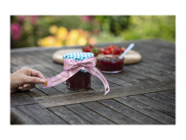 Lors d'occasions spéciales, utilisez le ruban TZe-RE54 avec votre étiqueteuse P-touch pour adresser vos vœux aux personnes qui vous sont chères. Laissez libre cours à vos talents et personnalisez vos cadeaux, vos cartes et vos créations avec le ruban tissu TZe-RE54 Brother original.