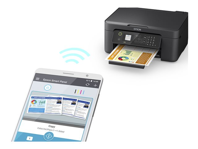Cette imprimante jet d'encre multifonction Wi-Fi est élégante, compacte et facile à utiliser dans un bureau à domicile. Réduisez le gaspillage et les coûts avec l'impression recto verso A4 et des cartouches d'encre séparées économiques. L'impression sur appareil en déplacement est aisée grâce au Wi-Fi, à Wi-Fi Direct, à Epson Connect , à l'application Epson Smart Panel et à Apple AirPrint .