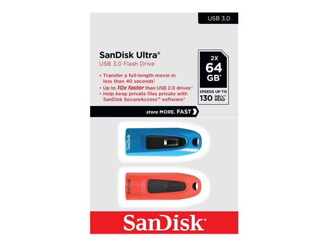 64 Go - USB 3.0 - bleu, rouge (pack de 2)