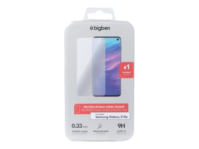 Description du produit BIGBEN Connected - protection d'écran pour téléphone portable Type de Produit Protection d'écran - verre Destiné à Téléphone portable Protection Résistant aux rayures, résistant aux traces de doigts Contenu de l'emballage Protection d'écran, kit de nettoyage Matériau du produit Verre trempé (9H) Epaisseur 0.33 mm Couleur de cadre Noir Couleur Transparent Conçu pour Samsung Galaxy S10e -