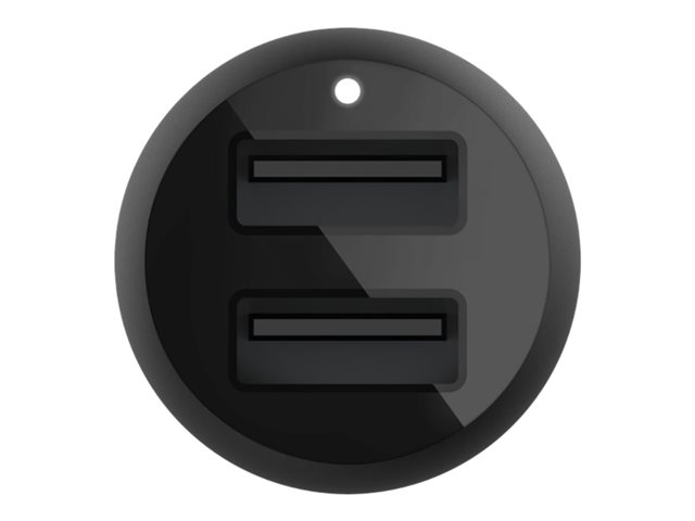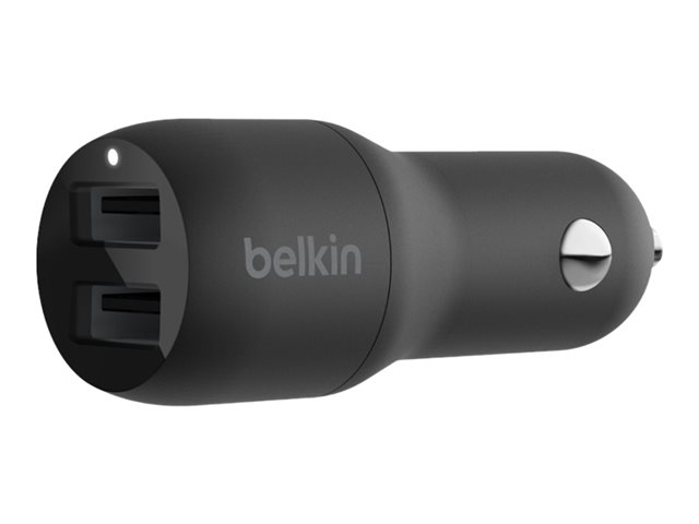 Le chargeur de voiture Dual USB-A Belkin BOOST?CHARGE (24 W), CCB001 est un chargeur de voiture à double port de 24 W. Il peut charger deux appareils sur ses ports USB-A jusqu'à 12 W chacun.