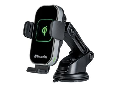 Chargeur de téléphone sans fil Qi pour votre voiture. Le support de téléphone à charge rapide de Verbatim utilise la technologie de charge sans fil Qi à grande vitesse pour assurer une charge sûre et rapide de votre Android ou iPhone. Le support de charge de haute qualité, avec sa surface en verre trempé, permet de passer des appels mains libres et de consulter facilement des cartes GPS tout en chargeant rapidement votre smartphone compatible Qi.