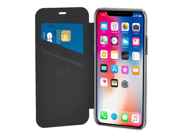 Étui à rabat pour téléphone portable - imitation cuir - noir, transparent - pour Apple iPhone 11