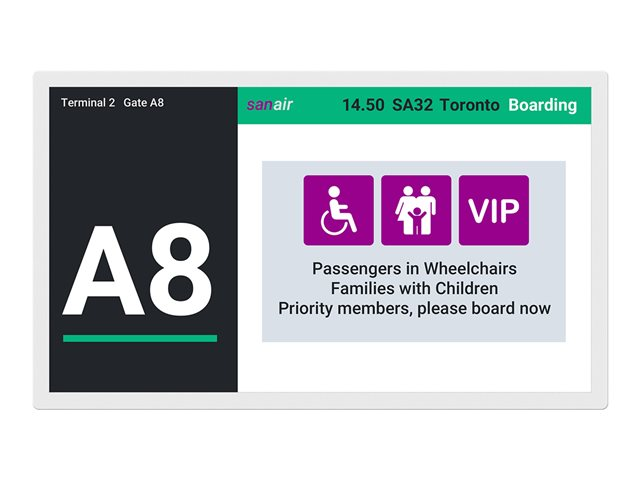 Grâce à sa conception robuste pour un fonctionnement 24 heures sur 24 et 7 jours sur 7 et à son compartiment pour batterie externe, il est conçu pour offrir des performances continues et fiables dans une grande variété de contextes. La consommation nulle de l'écran pour les images statiques et un adaptateur d'alimentation très efficace en font un choix écologique pour les entreprises qui cherchent à réduire leur empreinte énergétique.