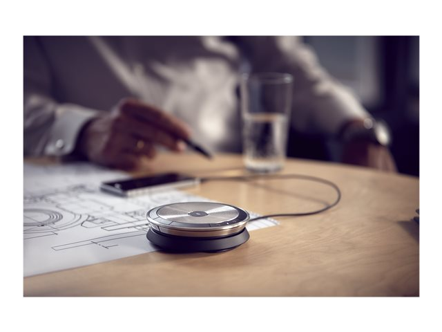 Travaillez instantanément et où que vous soyez avec votre équipe grâce à ce speakerphone plug and play qui offre un son haut de gamme, un design impeccable et une connectivité facile. Connectez-vous simplement à votre smartphone, ordinateur portable ou tablette, et organisez votre réunion où cela vous convient.