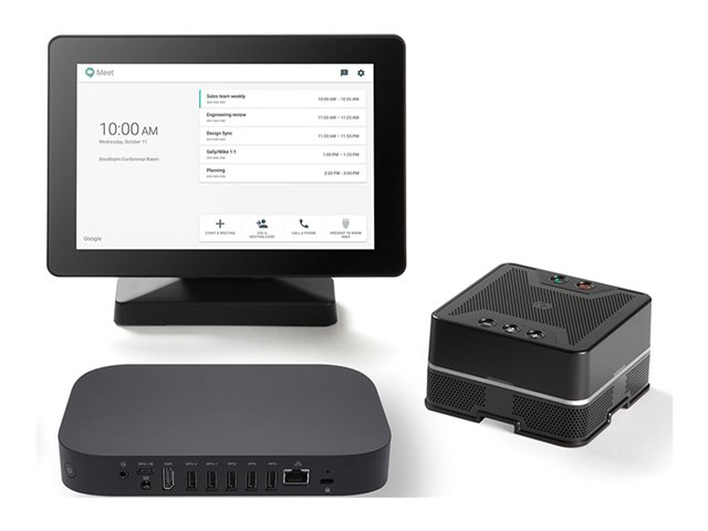 ASUS Google Meet hardware kit est la solution de vidéoconférences HD intuitive qui va vous épater. Le kit inclut un puissant mini-ordinateur équipé d'un processeur Intel Core i7 ainsi que d'une caméra 4K UHD avec grand angle de 120 ° et une technologie ajustant automatiquement le niveau de zoom et le cadrage en fonction du nombre de participants. Il comprend également un écran tactile de contrôle et un microphone/haut-parleur combiné qui inclut des technologies de réduction des échos et nuisances sonores pour vous offrir une qualité audio inégalée. Des microphones/haut-parleurs supplémentaires peuvent être répartis à travers la salle pour que tous les participants puissent parfaitement entendre et se faire entendre. Le kit ASUS Google Meet Hardware s'adapte idéalement à tout environnement professionnel moderne car il améliore le travail d'équipe grâce à une collaboration instantanée entre chacun.
