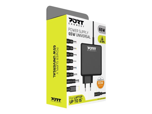 L'alimentation universelle 900093B de PORT Connect contient 8 embouts universels compatibles avec de nombreuses marques : Lenovo, HP, Asus, Acer, Samsung, Dell... L'alimentation est compatible avec la plupart des ordinateurs portables jusqu'à 15" ou jusqu'à 65 W. Elle dispose d'un régulateur de puissance pour s'adapter à la machine et d'une protection contre les surtensions. Le produit est facile à utiliser, fiable et durable.