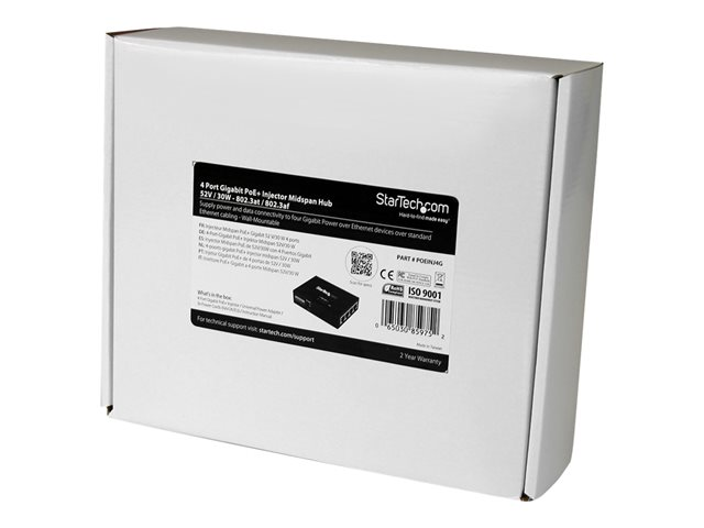 StarTech.com Injecteur PoE+ à 4 ports Gigabit