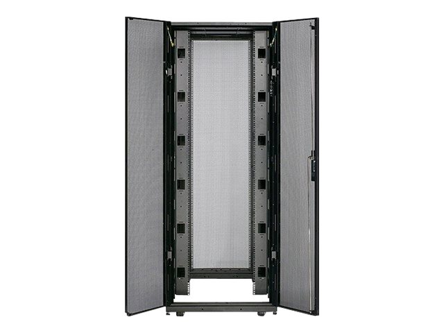 Armoires informatiques riches en fonctionnalités optimisées pour l'architecture en rangées InfraStruxure, la gestion des câbles, la distribution d'alimentation ainsi qu'une circulation d'air optimale.