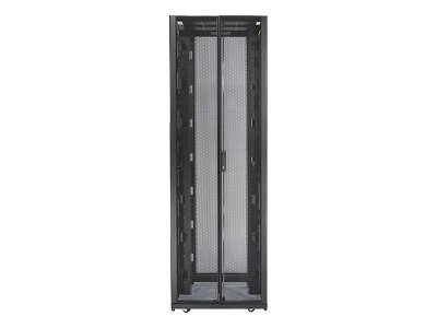Armoires informatiques riches en fonctionnalités optimisées pour l'architecture en rangées InfraStruxure, la gestion des câbles, la distribution d'alimentation ainsi qu'une circulation d'air optimale.
