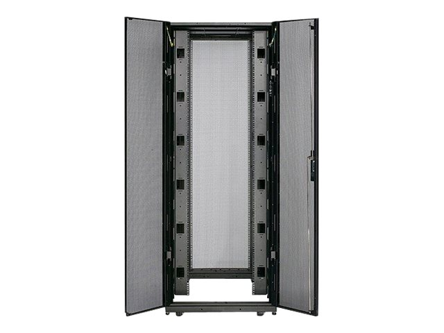 Armoires informatiques riches en fonctionnalités optimisées pour l'architecture en rangées InfraStruxure, la gestion des câbles, la distribution d'alimentation ainsi qu'une circulation d'air optimale.