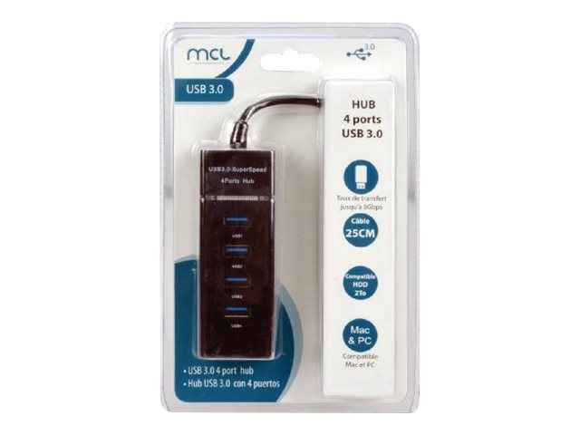 Avec ce hub USB 4 ports, augmentez le nombre de port USB 3.0 de votre PC ou Mac. Grâce à son design ce hub restera discret sur votre bureau. Une barre de led bleu vous indique son alimentation. Il peut recevoir un disque dur jusqu'a 2To.