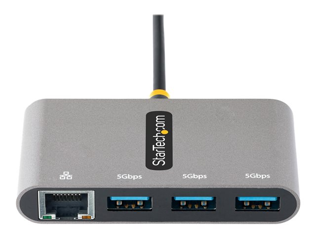 StarTech.com 3-Port USB-C Hub with Ethernet, 3x USB-A Ports, Gigabit Ethernet, USB 3.0 5Gbps, Bus-Powered, USB Type-C Hub w/ GbE and 1ft/30cm Long Cable, Portable USB-C to USB-A Laptop Hub