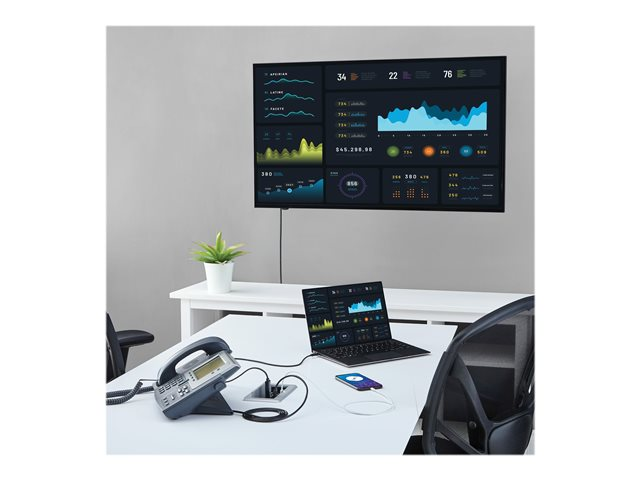 Le boîtier de table permet aux orateurs de partager facilement leur ècran d'ordinateur portable sur le grand ècran ou le projecteur de la salle de confèrence, avec des rèsolutions jusqu'à 4K 30 Hz prises en charge.