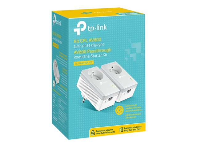 Le TL-PA4015PKIT transforme votre circuit électrique en un réseau haut débit sans avoir à tirer de nouveaux câbles ou à percer des trous. Aucune configuration n'est requise, branchez simplement vos adaptateurs dans une prise électrique et créez un réseau CPL en un éclair. De plus sa prise intégrée garanti qu'aucune prise électrique n'est perdue. Avec une vitesse atteignant près de 500Mbps et une portée de près de 300m via le réseau électrique, le TL-PA4015PKIT est un choix privilégie pour construire aisément un réseau multimédia dédié aux loisirs.